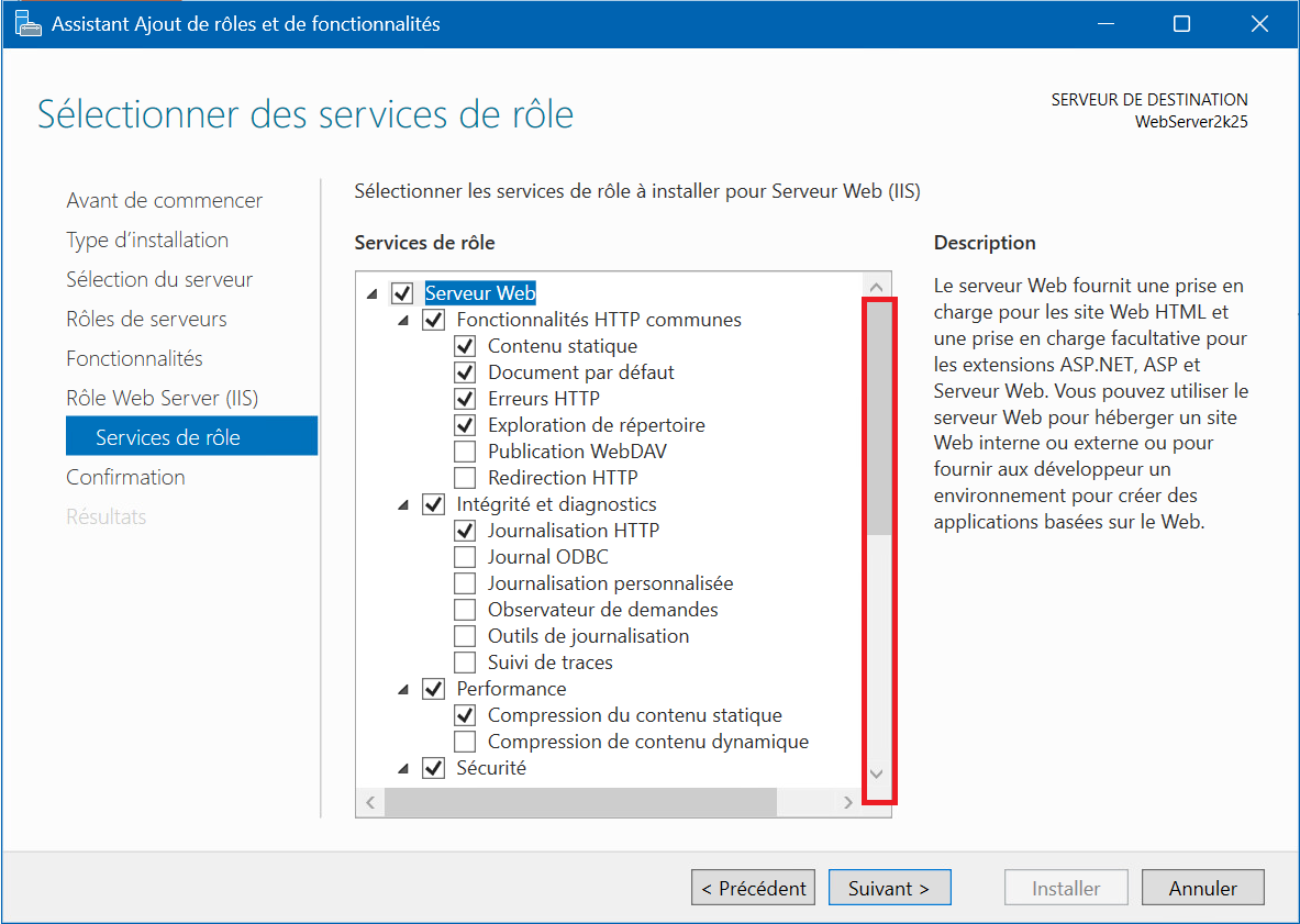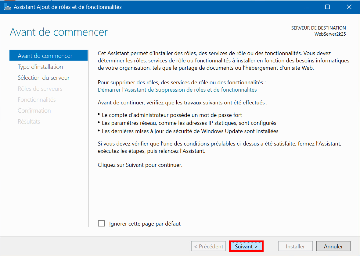 4 – Dans la partie « Rôle Web Server (IIS) » cliquez sur « Suivant » :