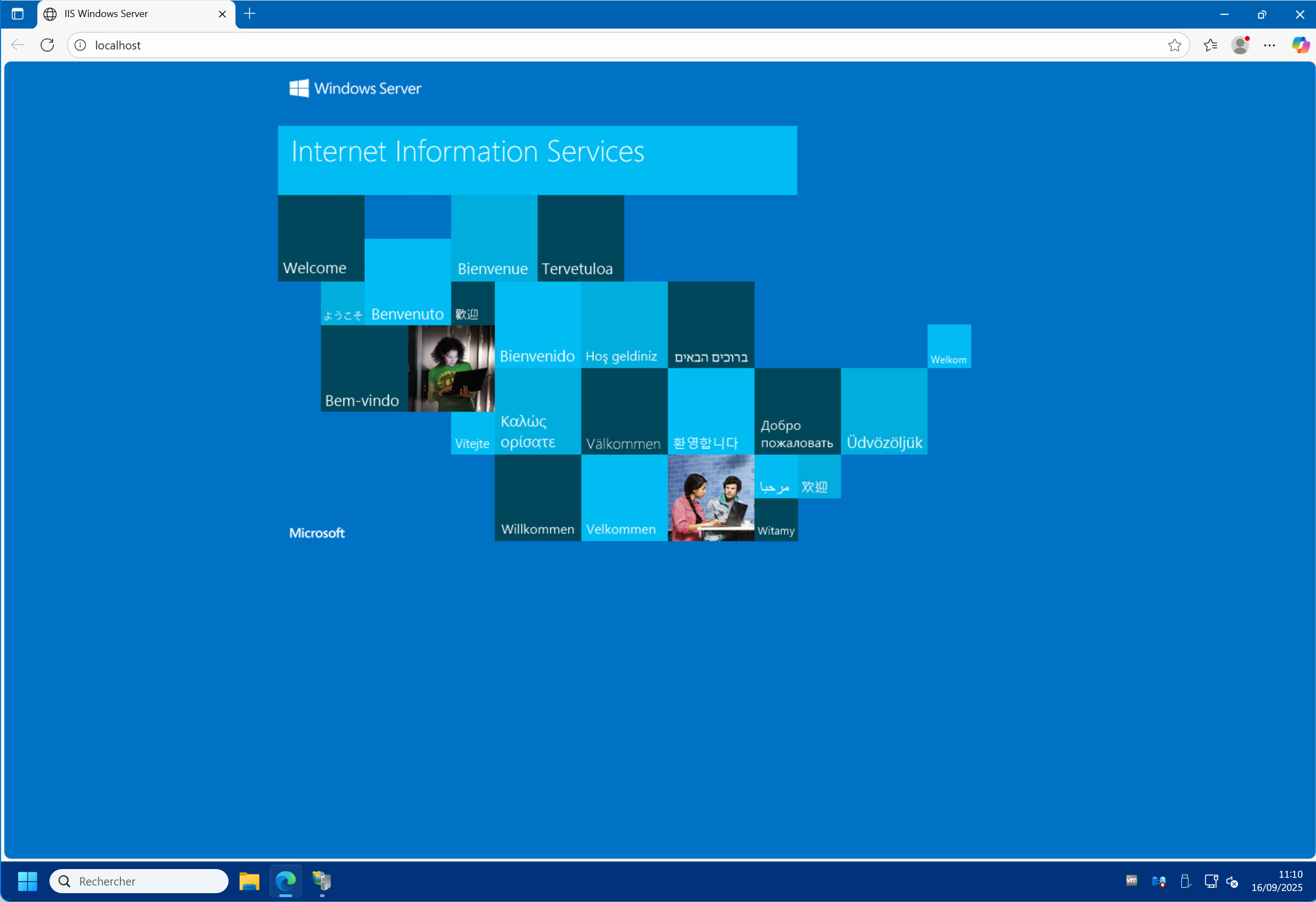 9 – Dans votre navigateur Web, la page par défaut devrait apparaître à l’adresse « http://localhost » , confirmant la bonne installation du rôle IIS. Félicitations! Vous avez terminé l’étape 1.