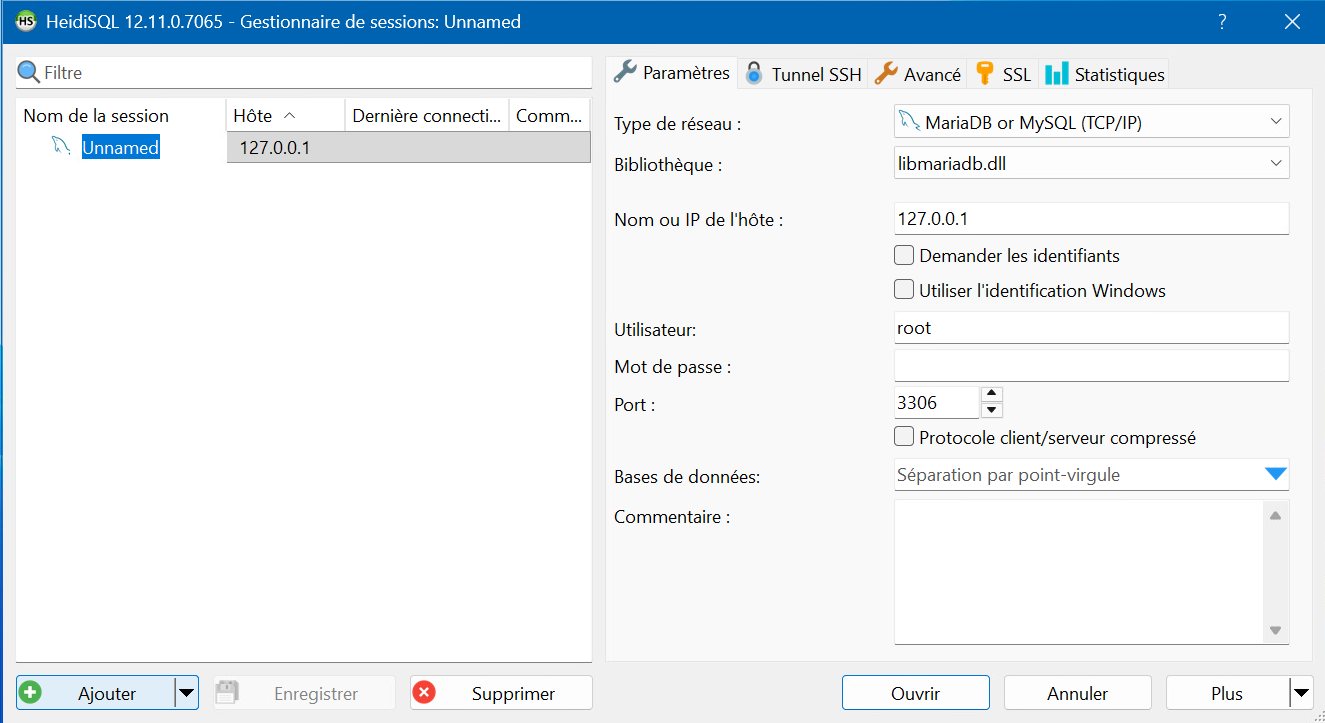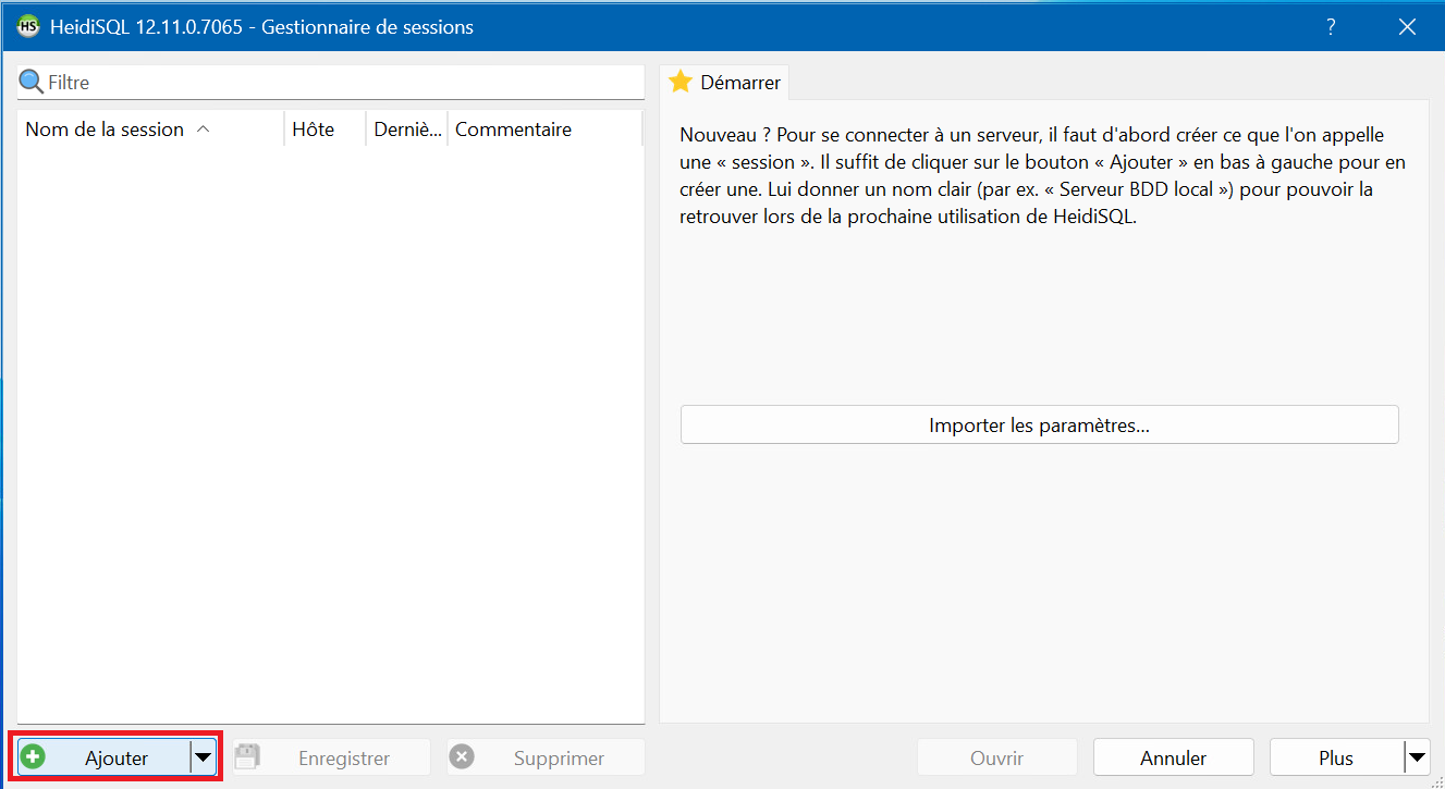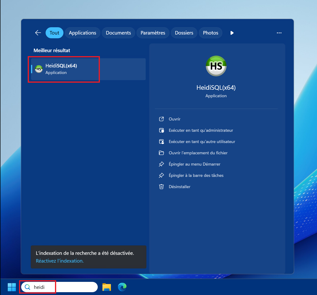 1 – Lancez « HeidiSQL » (menu Démarrer ou recherche) :