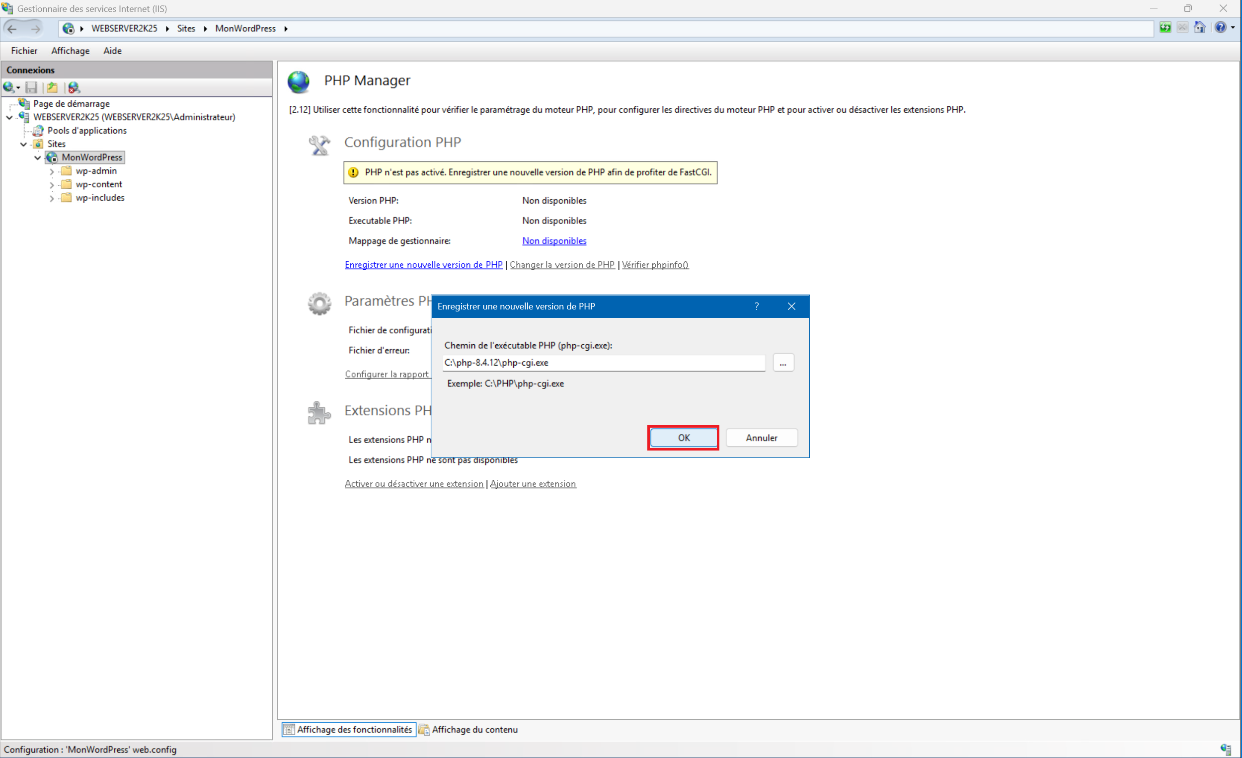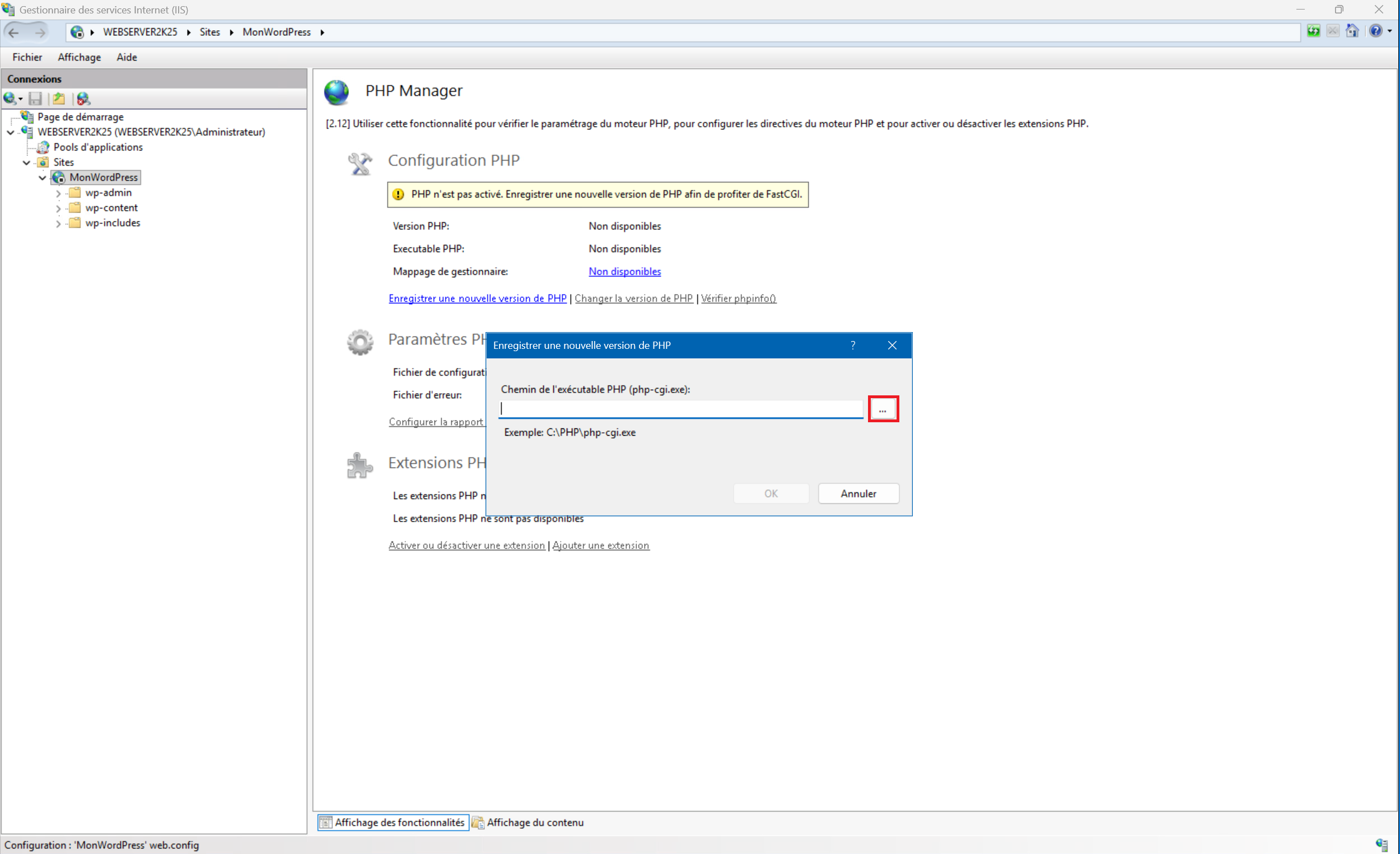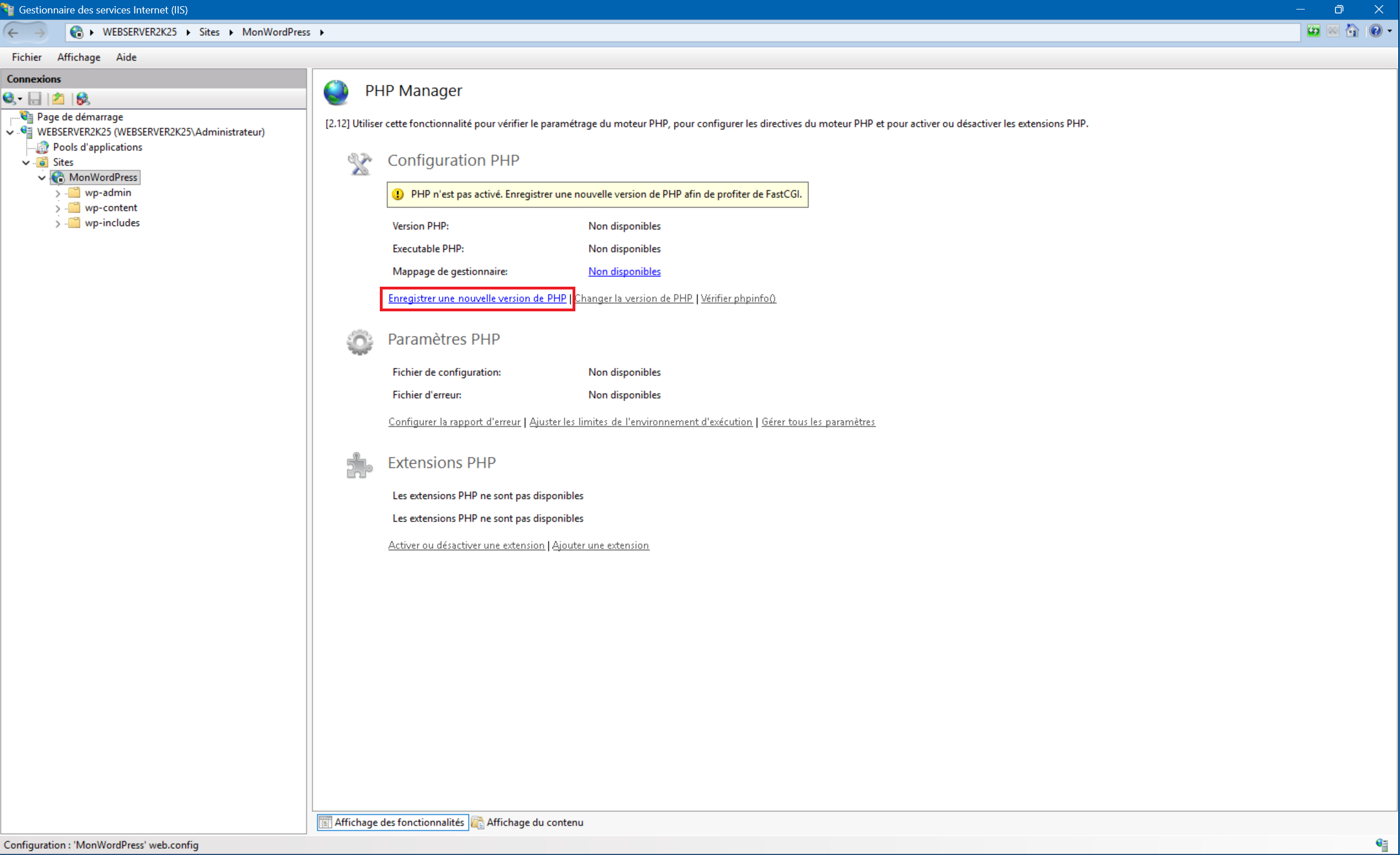 4 – Dans la console de gestion IIS vous devriez avoir l’icone « PHP Manager » désormais. PHP est installé sur votre serveur!