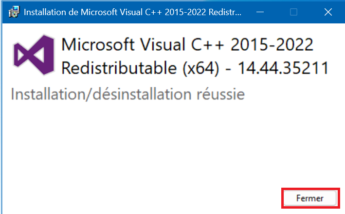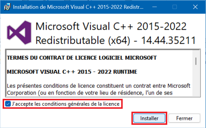 1 – Lancez et installez le package « VC_redist.x64.exe » :