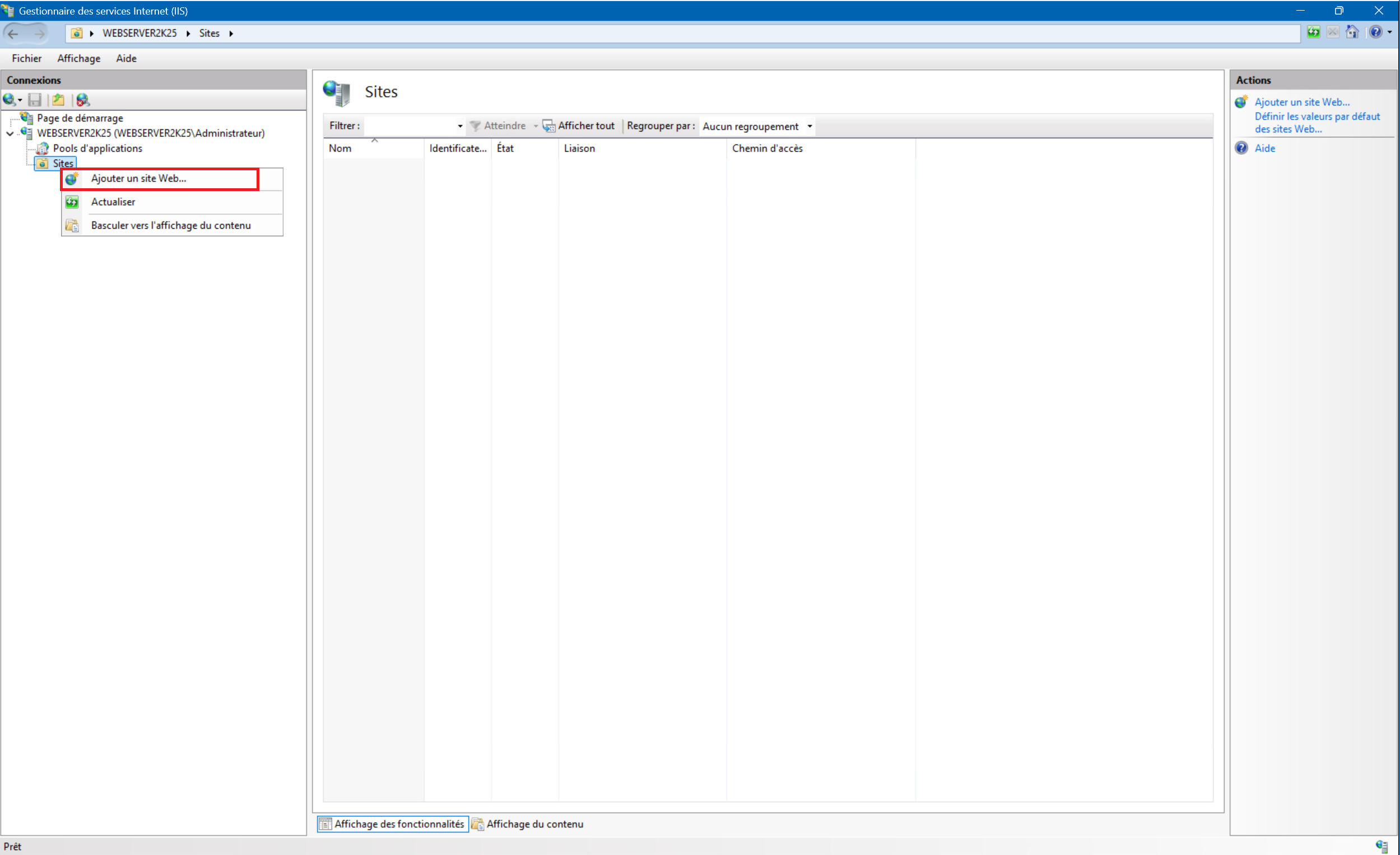 2 – Faites un clic droit sur « Sites » , puis cliquez sur « Ajouter un site Web… » :