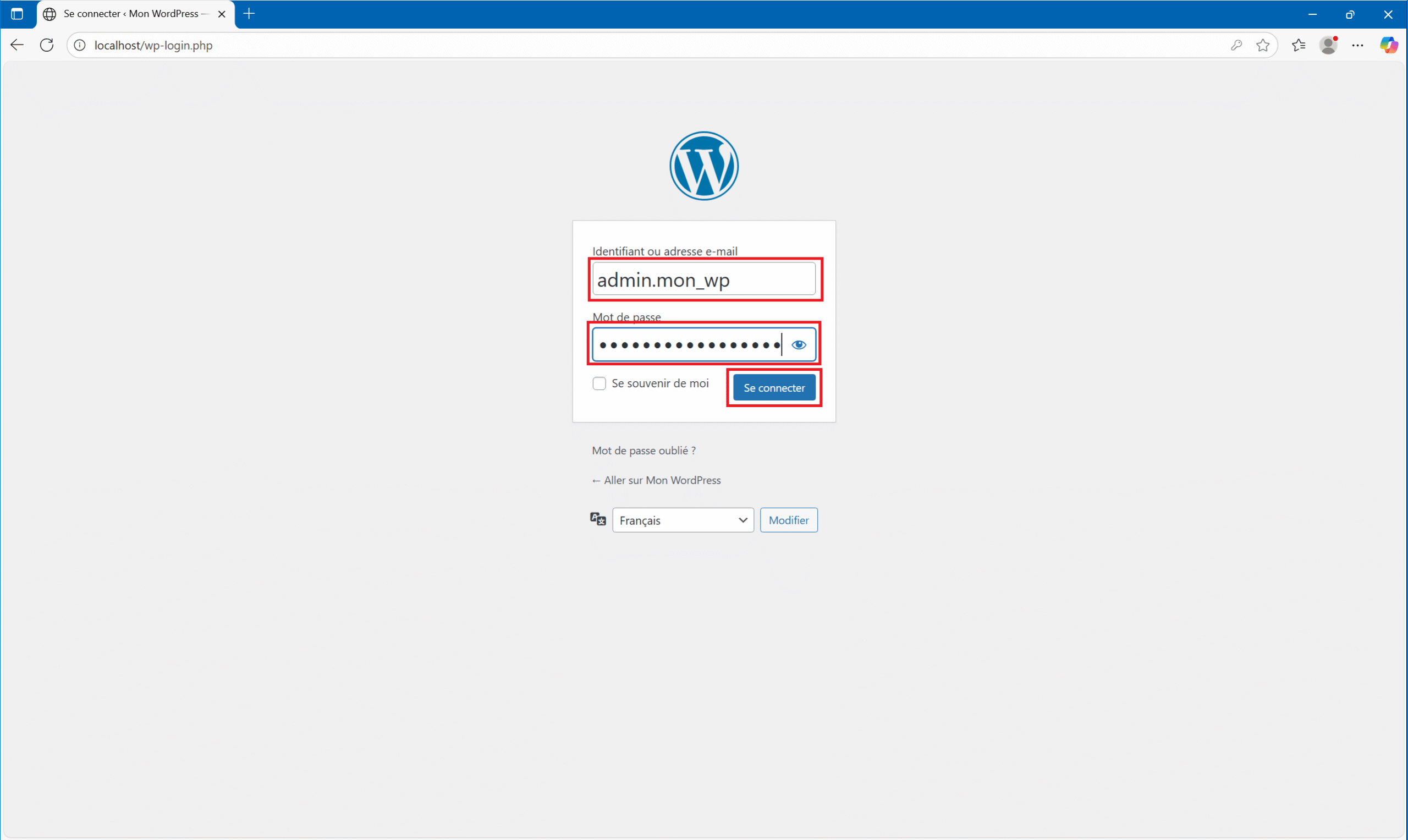 5 – La configuration est terminée! Vous pouvez vous connecter à votre site WordPress en cliquant sur « Se connecter » , puis sur la page suivant entrez vos identifiants WordPress et enfin cliquez sur le bouton « Se connecter » . Bienvenue sur WordPress !