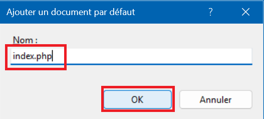 5 – Tapez « index.php » dans le champ « Nom: » puis cliquez sur « OK » :